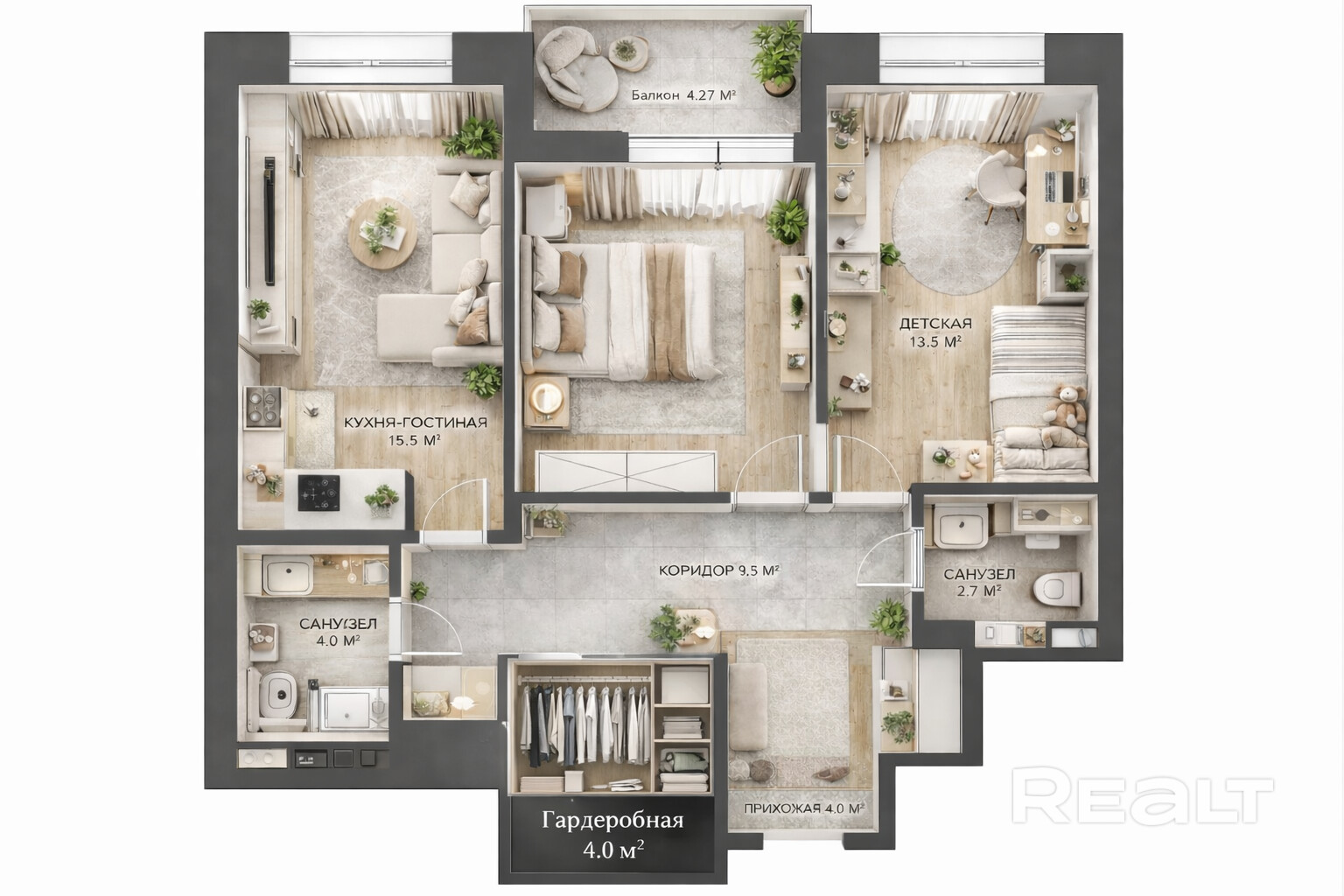 Предлагаем к продаже стильную квартиру премиум-класса в одном из самых престижных жилых комплексов Минска — ЖК «Маяк Минск», дом «Делакруа», ул. Туровского, 26.