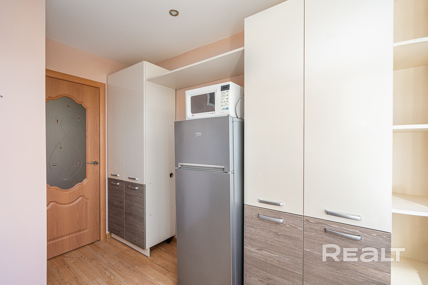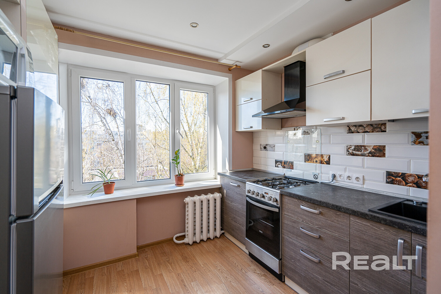 Из агентств прошу не звонить. Приятная "брежневка" в спокойном квартале. Дом кирпич, утеплён снаружи. Коммуникации заменены, электрика приведена в порядок. Кухня 7,4м2. Раздельный сан.узел. Все внутренние стены-это перегородки. Окна на детские сады. Гимназия в соседнем здании. 6 минут до метро "Пл. Я.Коласа" на трамвае, метро "Площадь Победы" 10 минут, остановка 200метров от подъезда