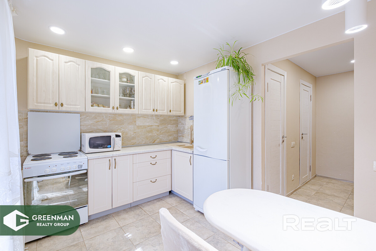 Продается большая, светлая, теплая однокомнатная квартира, расположенная в одном из самых живописных районов города Минска в непосредственной близости от Ботанического сада, «Парка Челюскинцев» и Слепянской водной системы.