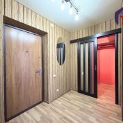 - Качественный ремонт выполнен с использованием современных материалов. На полу уложен ламинат, на стенах обои (стены выровнены). Заменены межкомнатные двери из массива, входная металлическая дверь. Натяжные потолки придают особый шарм ремонту.