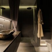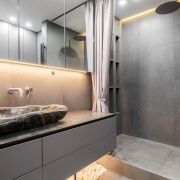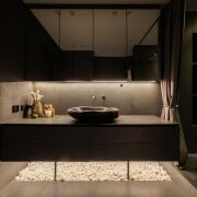 - Санузел оформлен в эстетике SPA:  раковина из натурального камень, современная сантехника, тёплый пол, атмосфера дорогого отельного комфорта.