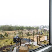 - Из окон открывается действительно редкий вид: лес, парк, зоны барбекю и благоустроенная территория, которую сложно встретить в обычной городской квартире.