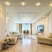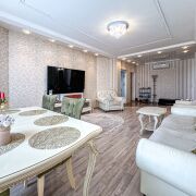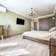 Все двери и кухня из массива , выполнены по спец.заказу, итальянская плитка из Сквирел, премиальная французская сантехника Jacob Delafon, кондиционеры Panasonic, двухкамерный холодильник LG, посудомоечная машина Electrolux 60 см, варочная панель Electrolux, духовой шкаф Ariston Hotpoint, огромный телевизор LG в гостиной и спальнях, кофе-машина DeLonghi ,плюс вся мебель - все остается новым владельцам.