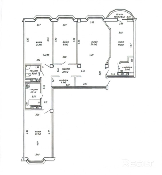3 большие спальни: 21,3  21,7 и 18,1 кв м.