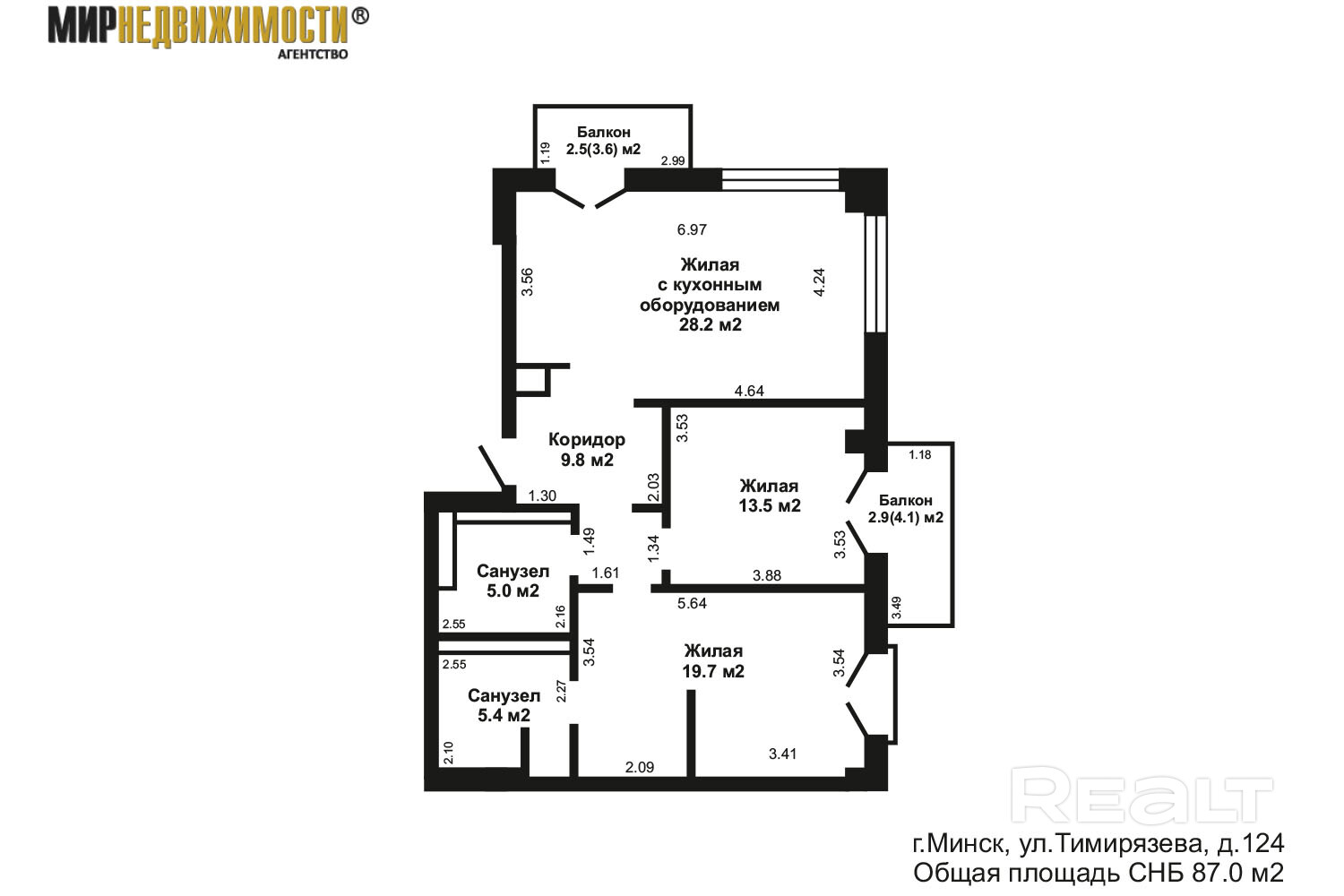 Общая площадь 81,6 кв.м., площадь по СНБ 87,0 кв.м., жилая 61,4 кв.м. Высота 2,99 м.