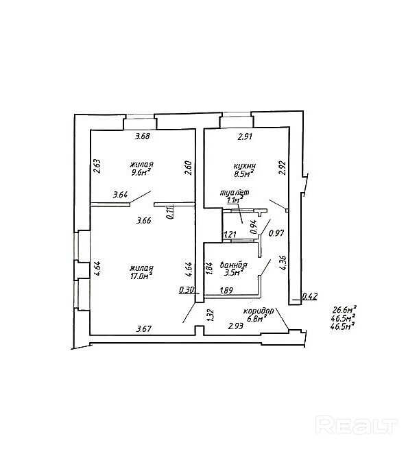 46.5 м²