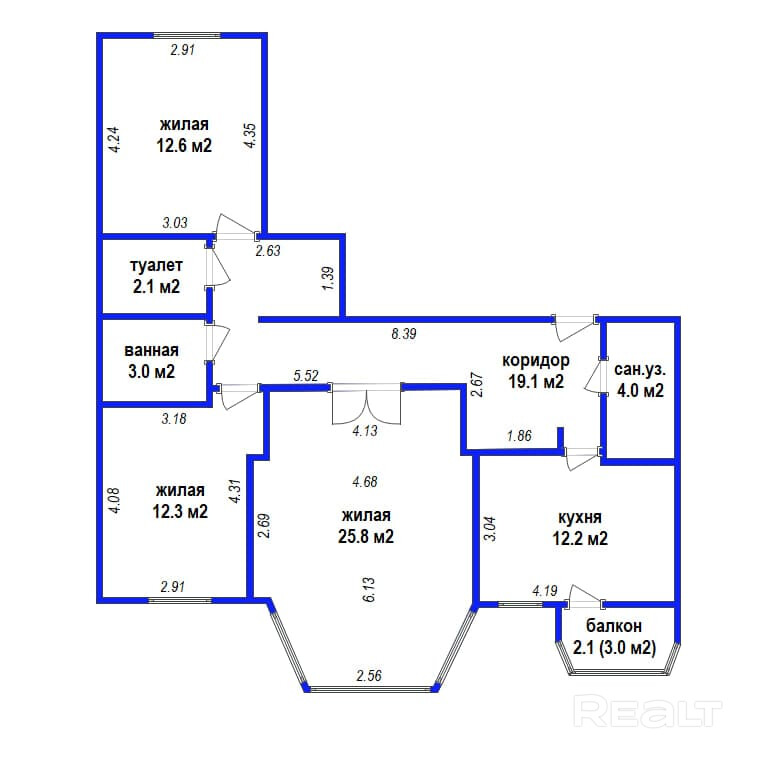 - общая площадь: 93,2 кв. м (по СНБ), жилая: 50,7 кв. м;