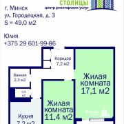 Продаётся отличная 2х комнатная квартира рядом с метро Уручье по ул. Городецкая, д. 3! Общая площадь квартиры составляет 49,0 м.кв. Две раздельные комнаты (17,1 и 11,4 м.кв.), кухня (7,2 м.кв.), раздельный санузел, большая прихожая. В квартире установлены стеклопакеты.