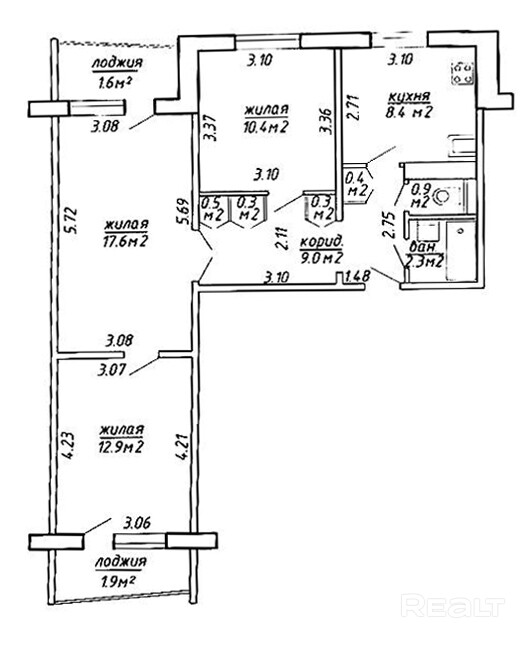 Квартира 66,5 метров квадратных по СНБ, кухня 8,4 метра квадратных.