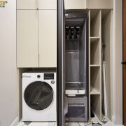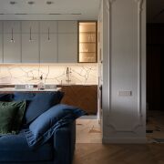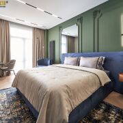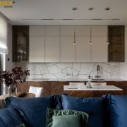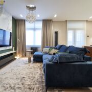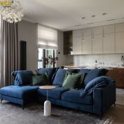 Мебель изготовлена на заказ в Domani, мягкая мебель – Sofa Club. Натуральные ковры. Бытовая техника премиум-сегмент от стиральной машины до чайника - Smeg и Liebherr, сушильный шкаф Samsung.