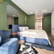 В спальных комнатах сделана шумоизоляция. Во всех комнатах кондиционеры.
