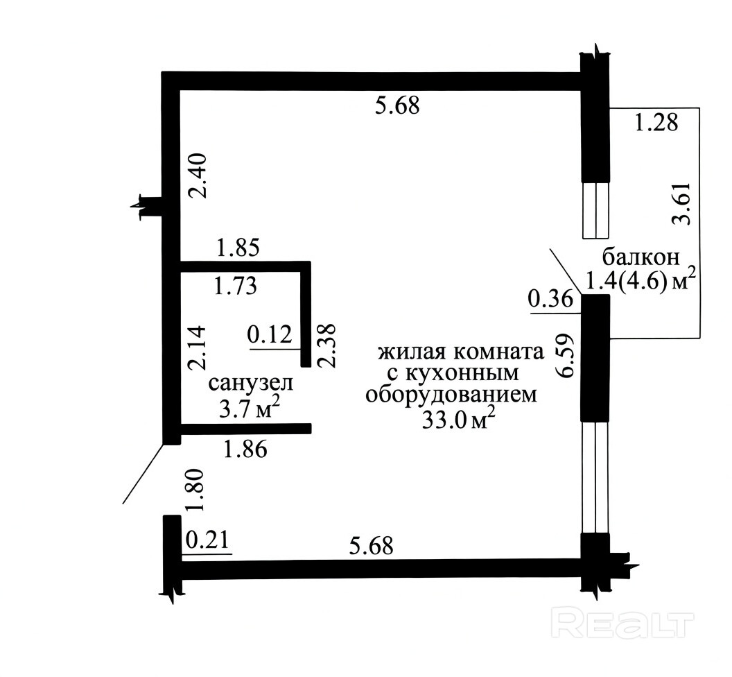 Жилая площадь: 33.0 м2 (свободная планировка — ваше преимущество!)