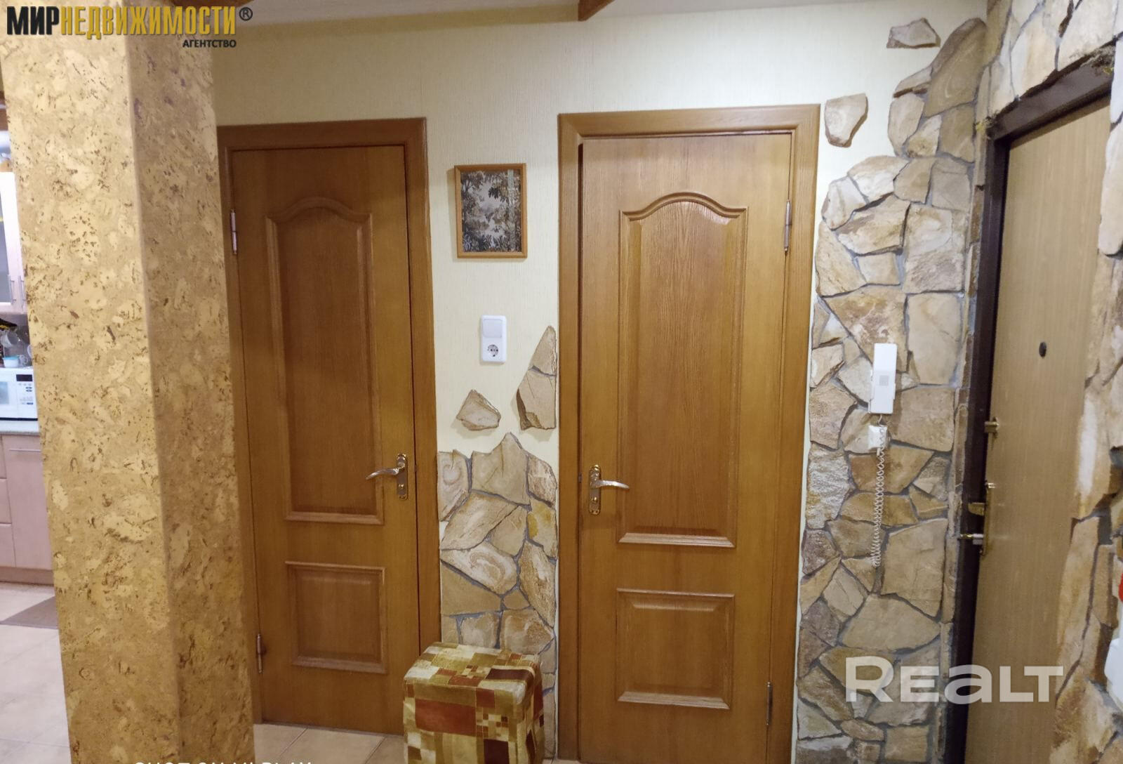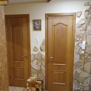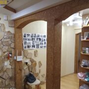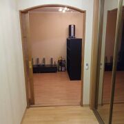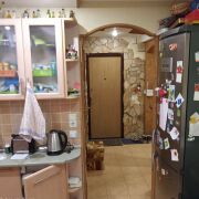 В свое время в ней был сделан качественный ремонт с использованием в отделке элементов декоративной штукатурки и пробки. Двери - массив, включая откатные в гостиную и санузлы, окна ПВХ на обе стороны, современная светлая плитка в санузлах, полы ламинат, в кухне на полу также плитка. Кухня квадратная площадью 8.5 м2 со встроенным гарнитуром. Просторная прихожая, металлическая дверь, лоджия выходит в тихий двор, она застеклена. Санузлы раздельные, счетчики воды, домофон.