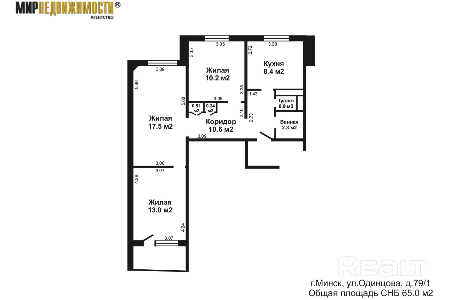 3-комнатная квартира ул.Одинцова, д.79/1