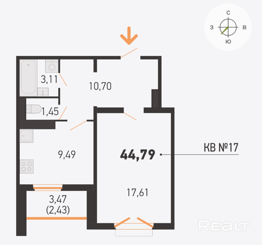 44.79 м²