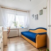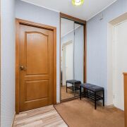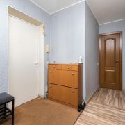 -В квартире сделан хороший, аккуратный ремонт. Установлена надёжная металлическая входная дверь, окна ПВХ обеспечивают тепло и хорошую шумоизоляцию. Потолки во всех комнатах выровнены и побелены, в санузлах - практичный сайдинг. На полу уложен ламинат в едином стиле, создающий ощущение цельности пространства.