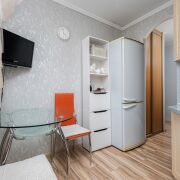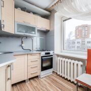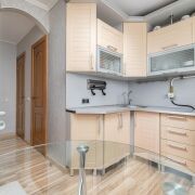-Кухня уютная и продуманная: установлен кухонный гарнитур, организована полноценная обеденная зона. Пространство воспринимается тёплым и жилым, без перегруженности.