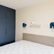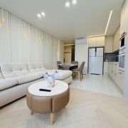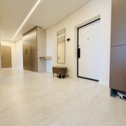Полы: Износостойкий кварц-паркет (гостиная и две спальни) и натуральная пробка в гостевой комнате. Премиальный керамогранит с подогревом во всех помещениях, включая санузлы и балкон.