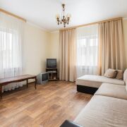 - Кухня полостью обустроена: встроенная кухня, варочная газовая панель, мойка, холодильник. Квартира обустроена мебелью, так что вы берете свои чемоданы и переезжаете.