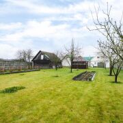 - К квартире относится земельный участок площадью 12,46 соток. Земля находится в частной собственности. На участке расположены незавершённая постройка из блоков с подвалом, беседка, два сарая, летний душ, уличный туалет и умывальник во дворе. Территория благоустроена, высажен газон, плодовые деревья и кустарники, 12 кустов голубики, 3 куста жимолости, малина и клубника. Есть весь необходимый инвентарь для ухода за участком и садовая техника для ухода за газоном (газонокосилка и тд). Есть даже мангал для организации отдыха на природе. Участок полностью огорожен со всех сторон.