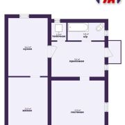 - Квартира общей площадью 58,3 кв.м расположена на первом этаже одноэтажного кирпичного дома. Жилая площадь составляет 31,3 кв.м, кухня 12,2 кв.м.