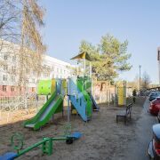 - Во дворе: детские площадки, велобокс, просторная парковка, въезд во двор через шлагбаум
