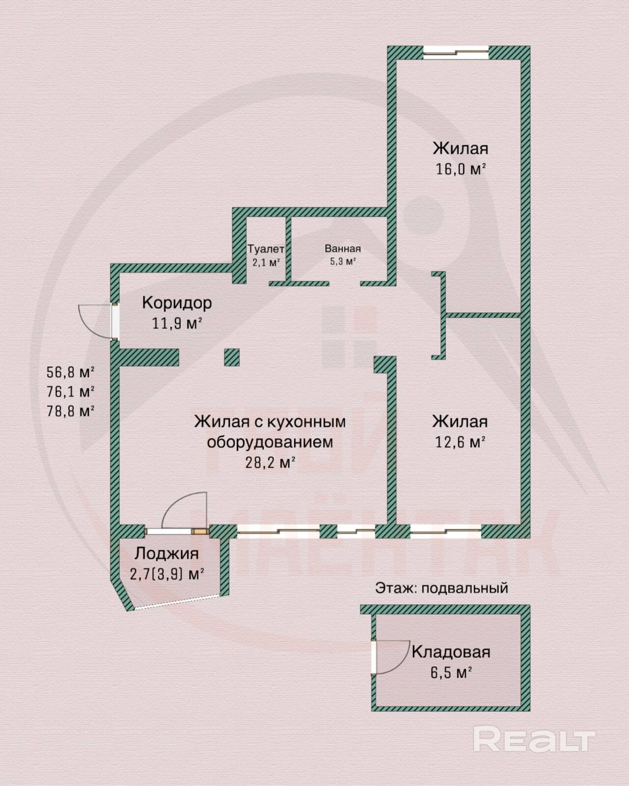 Квартира расположена на 3 этаже 9-этажного дома. Площадь квартиры составляет 78.8 м2 (76.1 м2 жилая), высота потолков 2.73 м.