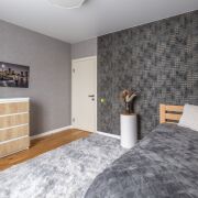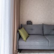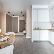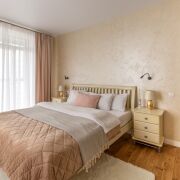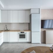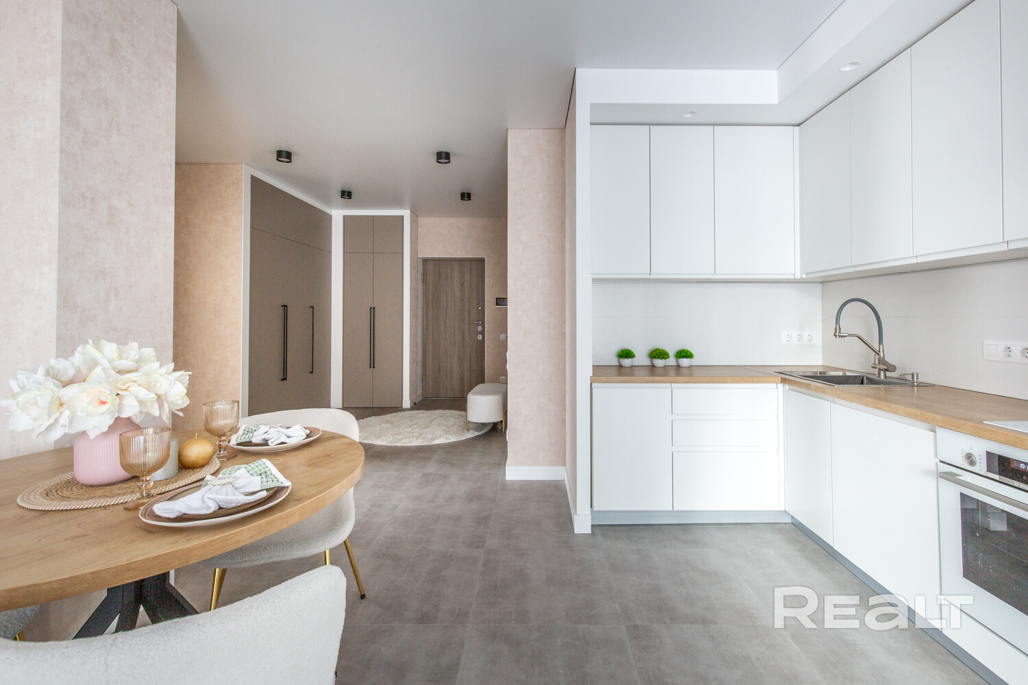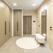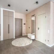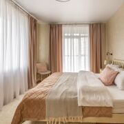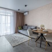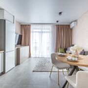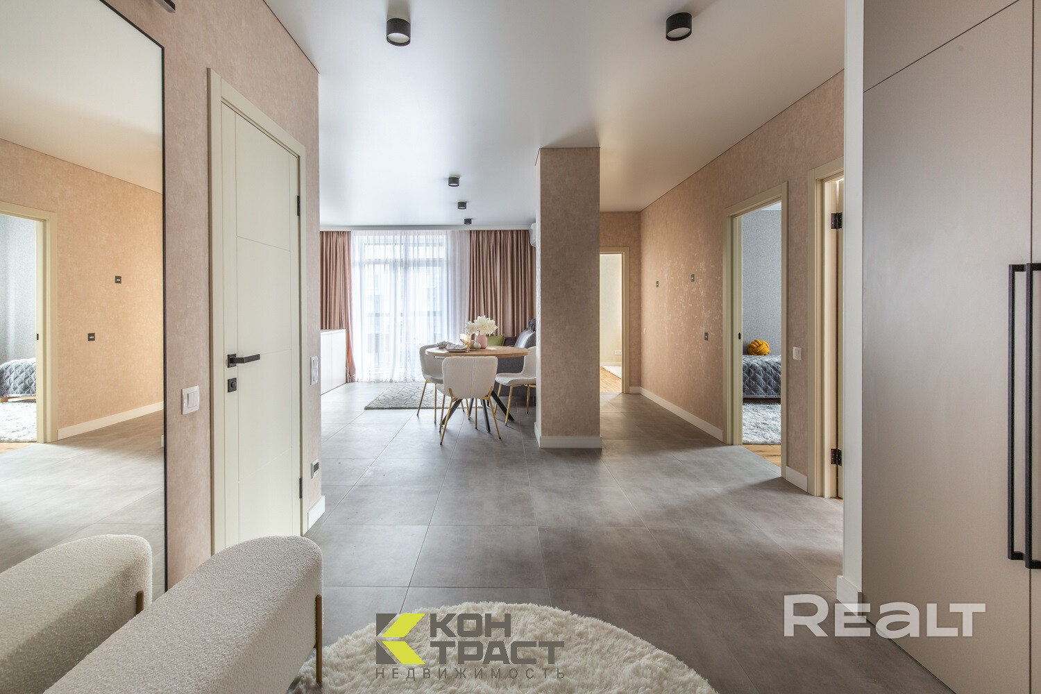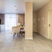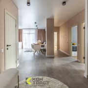 Современный ремонт выполнен в нейтральных теплых тонах с применением качественных,  материалов.