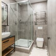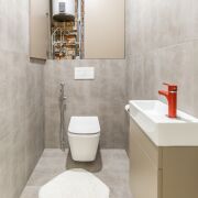 Накопительный водонагреватель обеспечивает постоянную подачу горячей воды на два санузла и кухню.