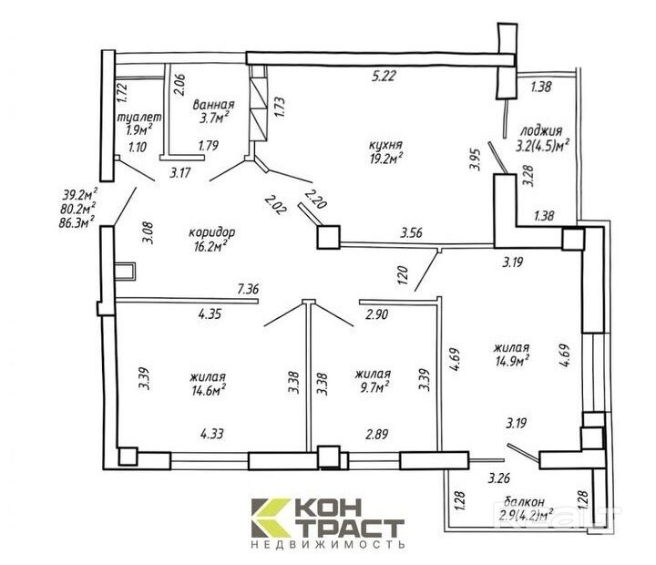 Площадь по СНБ 86,3 м2
