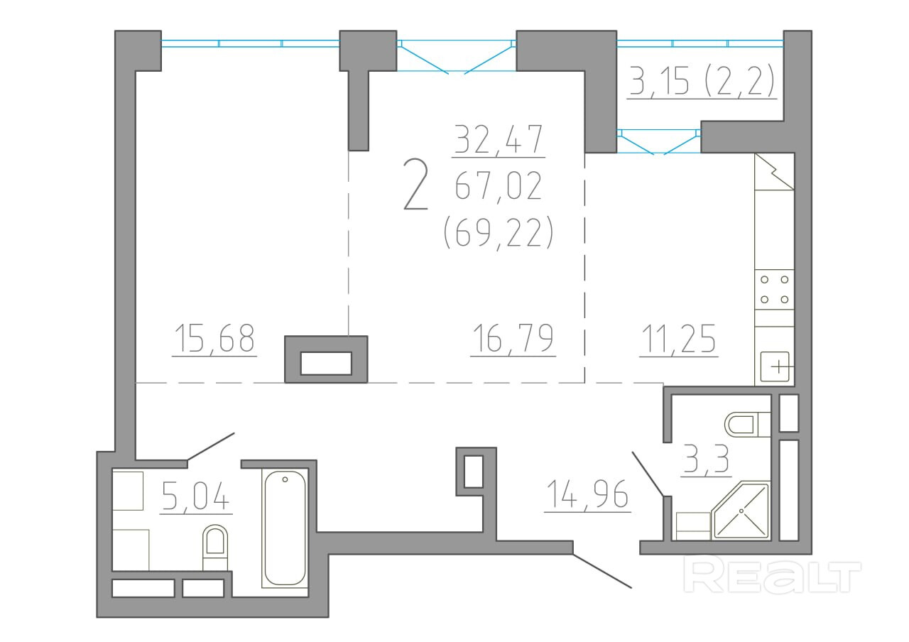 Площадь указана по СНБ. Дом 2026 г.п. из газосиликатных блоков, квартира без отделки, стены выровнены и оштукатурены, дополнительная звукоизоляция в стяжке пола и по внешним стенам квартиры, межэтажные перекрытия 60 см.