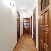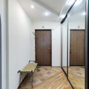 В прихожей и комнатах 3 шкафа-купе. На полу в комнатах паркет, в санузле и кухне плитка. Натяжные потолки в комнатах.