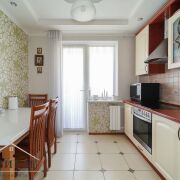 Встроенная кухня, оборудованная необходимой бытовой техникой импортного производства: духовой шкаф, варочная панель, посудомоечная машина, микроволновая печь, холодильник.