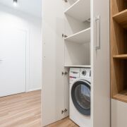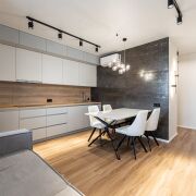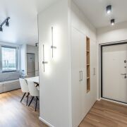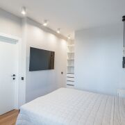 Дизайнерский ремонт здесь не для галочки. Здесь всё продумано до мелочей: каждая розетка на своём месте, каждая текстура подобрана так, чтобы рука хотела прикоснуться. Ремонт в постельных тонах — нежные оттенки льна, капучино из утреннего тумана — обволакивает тебя, как мягкое одеяло, обнимают а не давят.