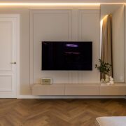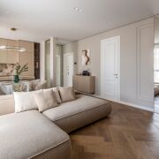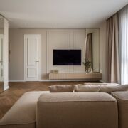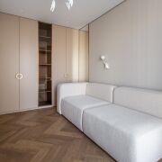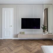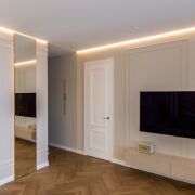 MKpaint, полы - инженерная доска дуба под матовым лаком, выполнена шумоизоляция потолков, пола и стен в спальнях. Межкомнатные крашеные двери со скрытыми петлями и итальянской фурнитурой Colombo, AGB, высотой 2,3 метра , входная дверь SilentDoors с дополнительной шумоизоляцией, плоским порогом и итальянскими замками Mottura.