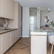 Общая площадь квартиры 78, 5 м2 квадратных метров с просторной кухней -гостиной 35 м2, двумя изолированными спальнями и гардеробной!