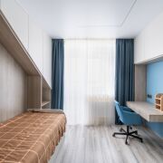 Планировка квартиры: санузел с возможностью зонирования туалета и ванной комнаты(есть перегородка выдвижная), вместительная гардеробная, 2 оборудованные детские комнаты( с лоджией в одной из комнат), хозяйская спальня с просторным балконом( по проекту есть вывод для ванной в спальне на месте комода, при желании можно реализовать проект), уютная кухня-гостиная с рабочей видовой зоной.