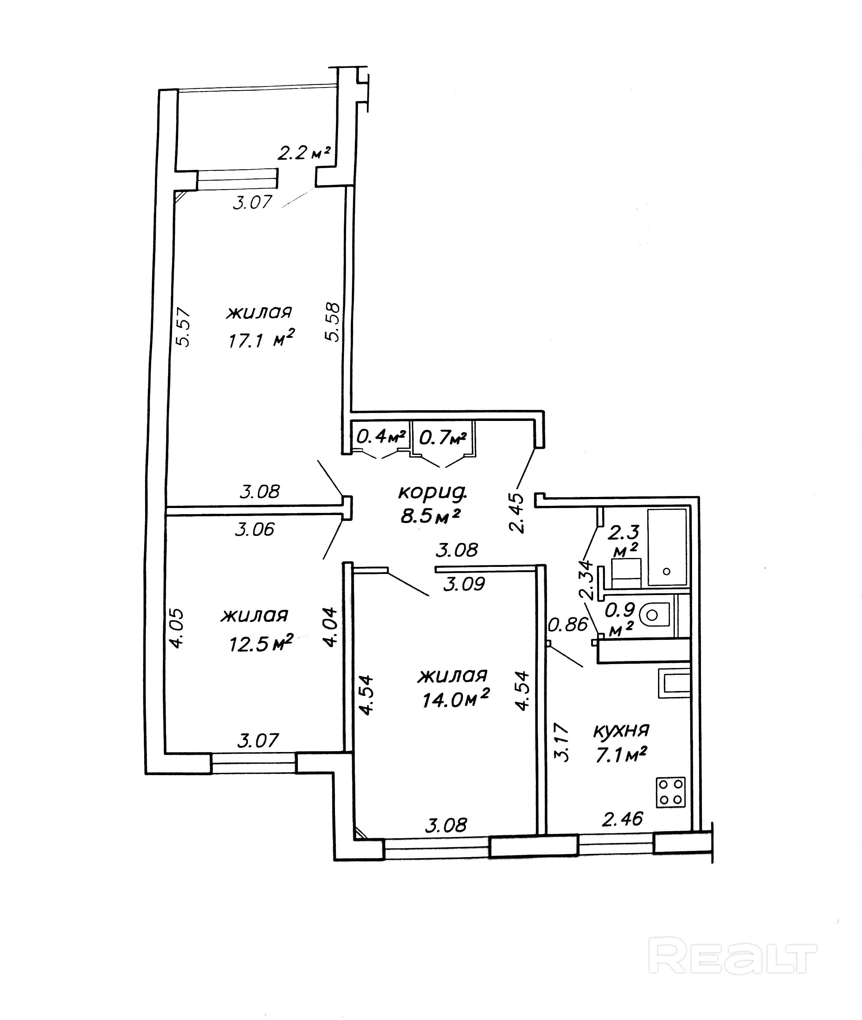 Удобная планировка: три отдельные комнаты, раздельный санузел, большая лоджия.