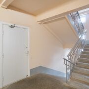 Аккуратный подъезд, благоустроенный двор, всё поддерживается в порядке.