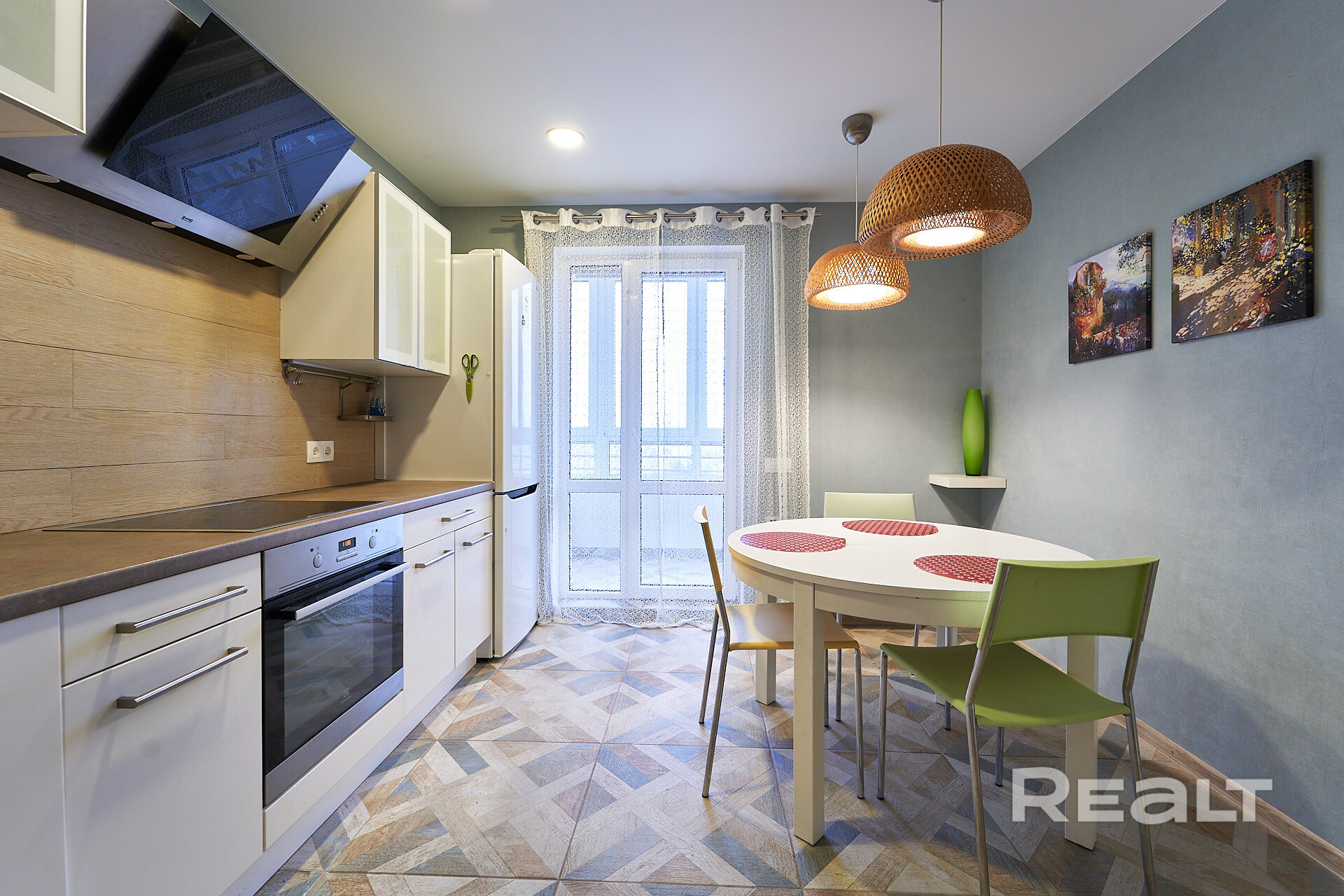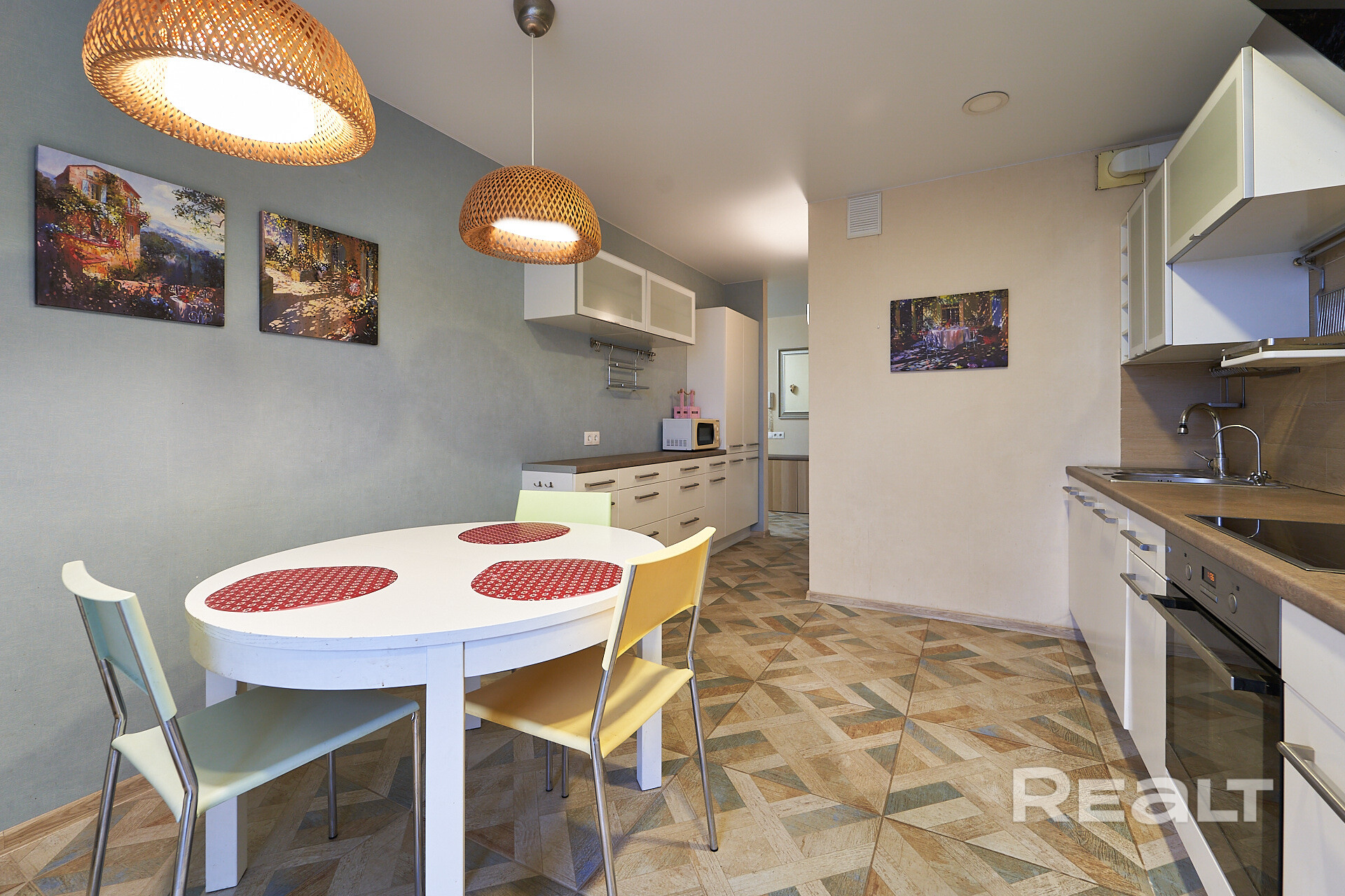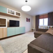 Квартира продается с мебелью в комнатах, кухне и бытовой техникой (стиральная машина, посудомоечная машина, телевизор, варочная поверхность, духовой шкаф, вытяжка) – как на фото.