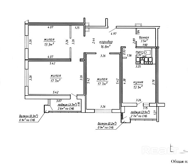 Площадь указана по СНБ.