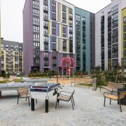Дом расположен в квартале «Центральный Парк», на сегодня самый стильный и зеленый квартал в Новой Боровой. Закрытый тихий двор без машин, множество зелени, проходные подъезды, современные площадки для детей разных возрастов, велобоксы, видеонаблюдение и т.д.