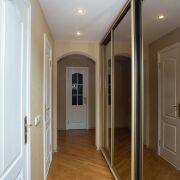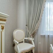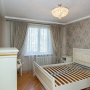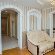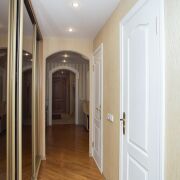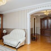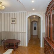 Встроенная кухонная, корпусная и мягкая мебель.. В санузлах - плитка, ванная, умывальник, смесители, двери. В оконных проемах стеклопакеты. В коридоре установлен вместительный шкаф-купе и гардеробная.Сигнализеция. Входная металлическая дверь.