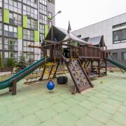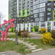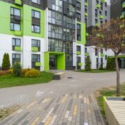 Современная локация для жизни с множеством зон для отдыха и прогулок. Дом с закрытой территорией, видеонаблюдением, стильными входными группами, парковкой под шлагбаум.