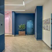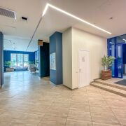 Два выхода из подъезда: во внутренний двор и к парковочной зоне. Три бесшумных лифта. Просторное лобби на первом этаже.