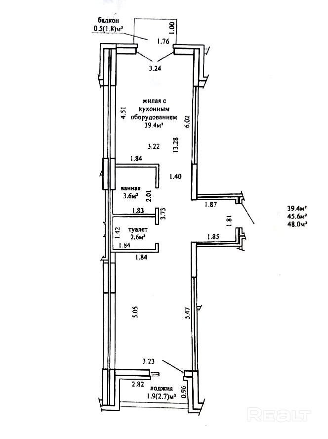 Общая площадь 45.6 м2 , на 2-ом этаже 15-этажного каркасно-блочного дома, 2023 г.п.