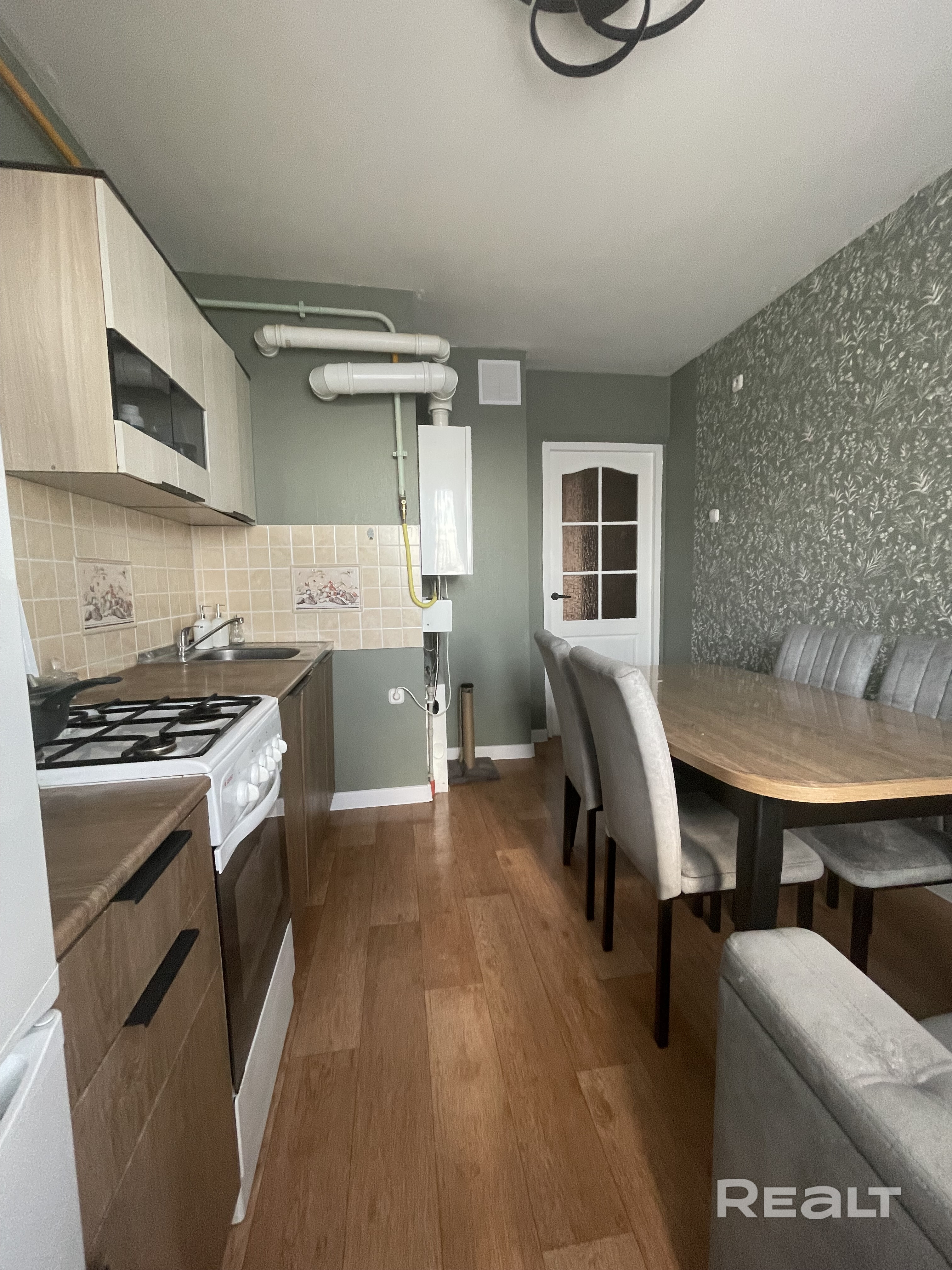 Просторная кухня с выходом на лоджию оценит каждая хозяйка. Современный индивидуальный газовый котел позволит вам самостоятельно регулировать температуру в квартире в любую пору года и контролировать расходы по подогреву воды.