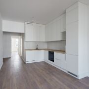 Квартира с интересной планировкой, состоящей из двух жилых комнат, окна которых выходят на запад и восток, большой кухни, оборудованной встроенной мебелью и техникой, гардеробной и двух санузлов. Ремонт сделан качественно. Потолки и стены выровнены и окрашены, на потолке предусмотрен карниз для штор, пол – ламинат, плинтуса белые, двери белые с качественной фурнитурой, окна с замками от детей. На кухне установлена техника фирмы MAUNFELD, встроенный холодильник с морозильной камерой Whirlpool