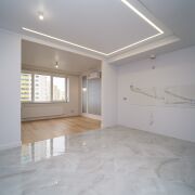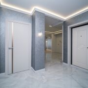 • Потолки: натяжные, гипсокартонные, багеты - продуманное многоуровневое освещение.