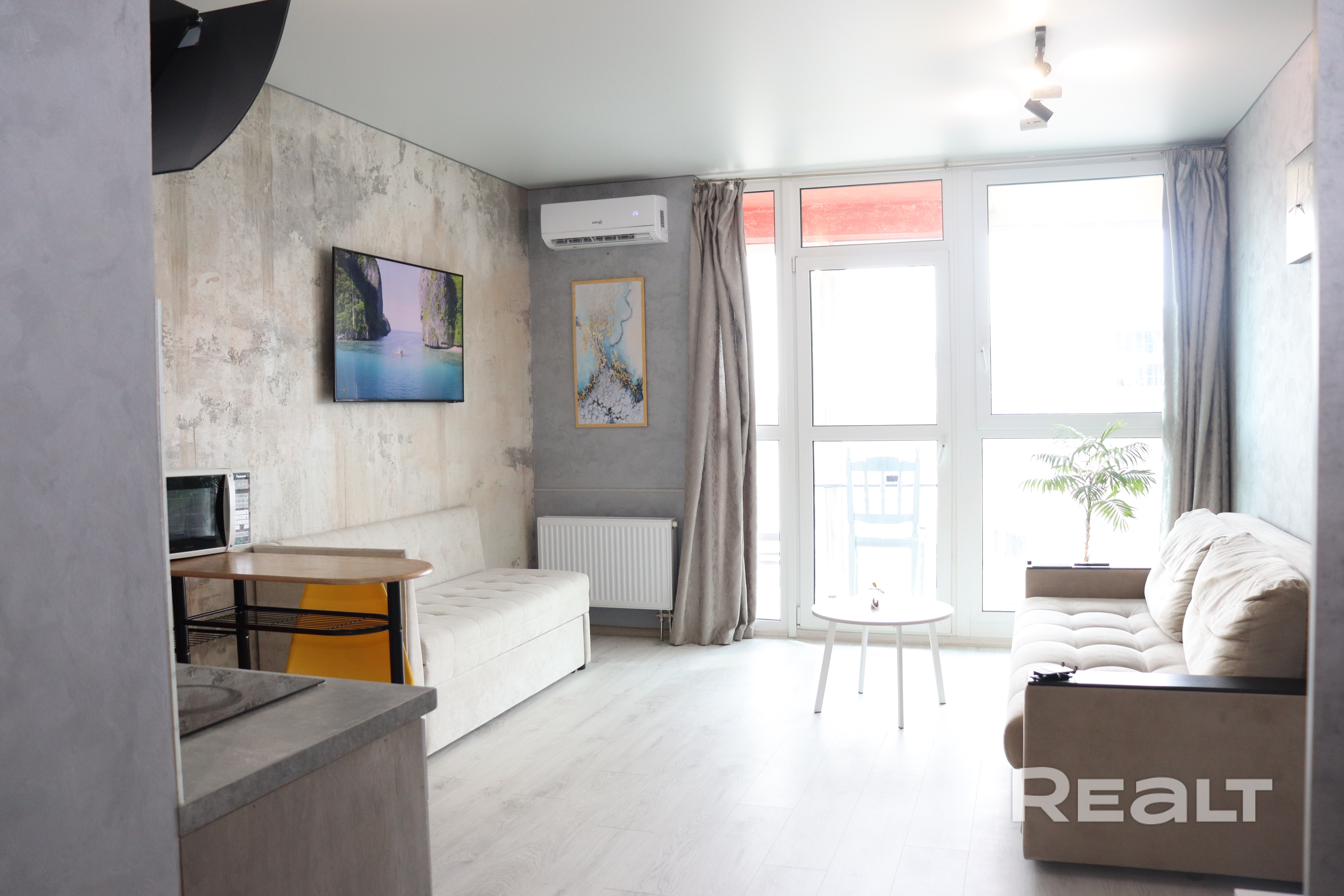 Уютная квартира-студия в Минск-мире, квартал Азия, в новом каркасно-блочном доме, с современным дизайнерским ремонтом 2023 года Декоративная штукатурка во всей квартире, панорамные окна, стильное освещение, продуманный интерьер, место отдыха на лоджии. Ремонт делался для собственного проживания, - поэтому в квартире предусмотрено всё необходимое для жизни. Агентствам не беспокоить! Никто не прописан! Без торга Чистая продажа Продает собственник!